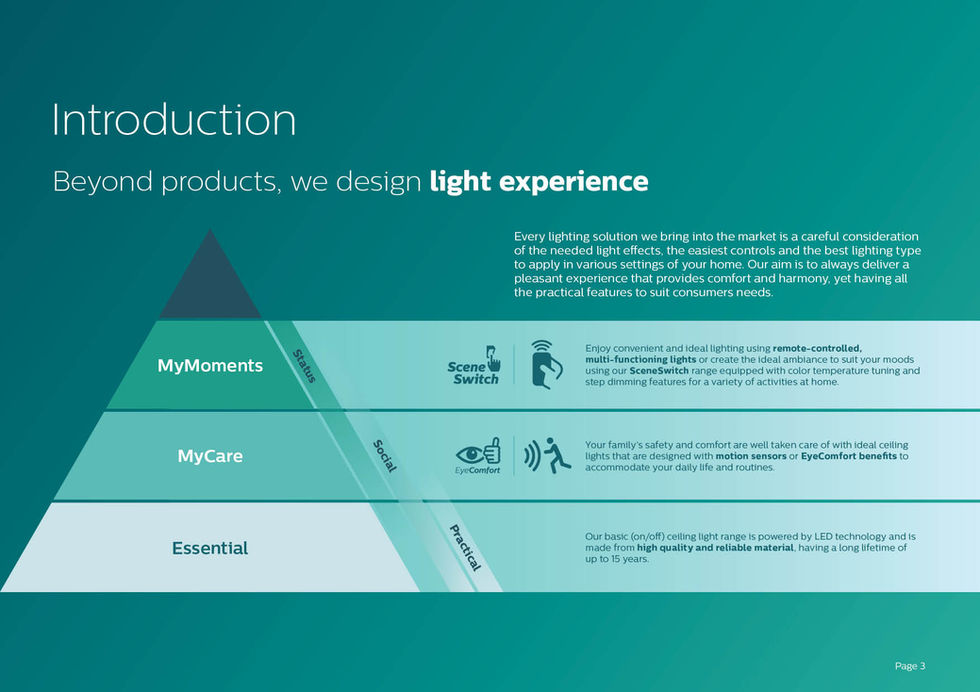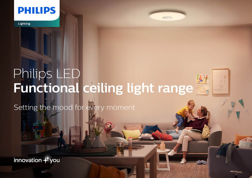 Creating Philips LED Functional Ceiling Light Range Catalogue that effectively showcases product features, functions, and modes in a clear and organized manner.